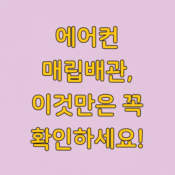Q1. 우리 집이 매립배관인지 어떻게 알 수 있나요? A1. 건물 설계 도면을 확인하거나, 실외기 연결 부위가 벽 안쪽으로 들어가 있는지, 혹은 벽에 작은 구멍으로 연결되어 있는지 등을 육안으로 확인해 볼 수 있습니다. 보통 최신 아파트나 빌라에는 기본적으로 설치되어 있습니다.